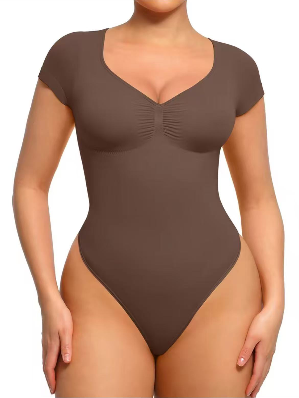Chiccurve Daily Use Comfy Tummy Control Shapewear Bodysuit Mid Thigh With Built-In Bra