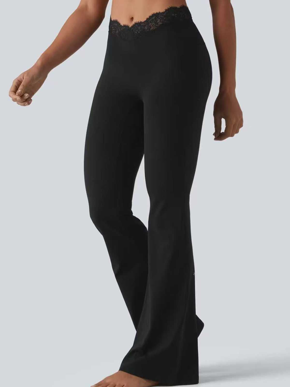 V Shaped High Waisted Lace Yoga Flared Leggings