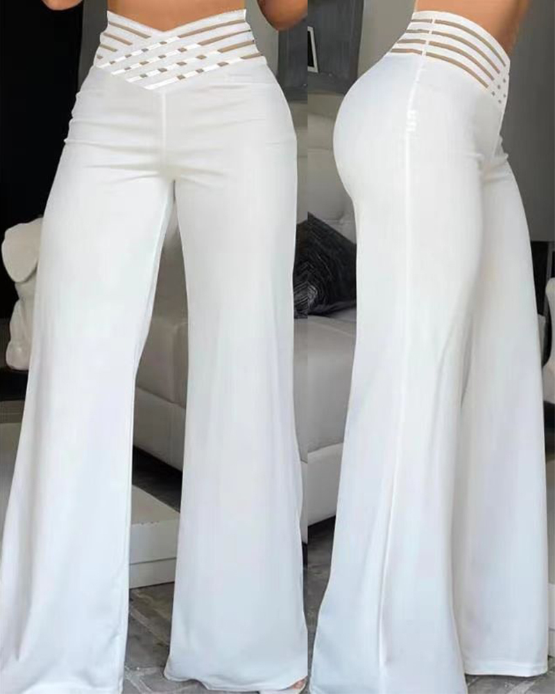 Cut-Out Belt High-Waisted Casual Wide-Leg Pants