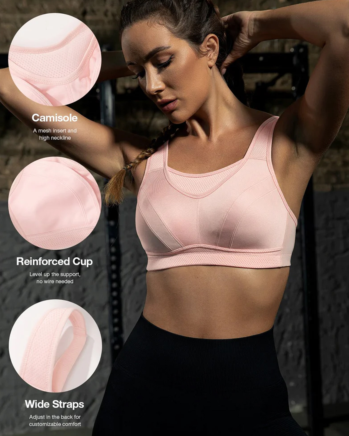 High Impact Large Bust Full Coverage Workout Bras-Pink