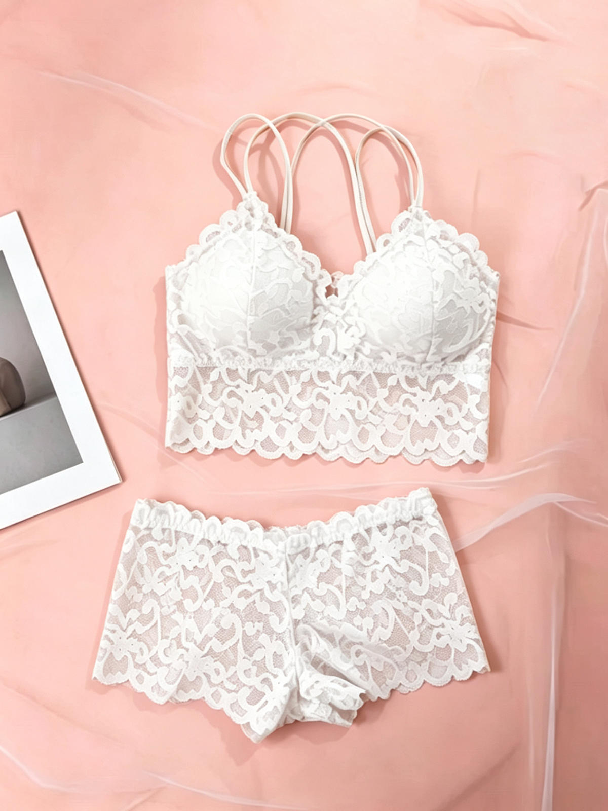 Lace Trimmed Wire Free Bra And Panty Two Piece Set