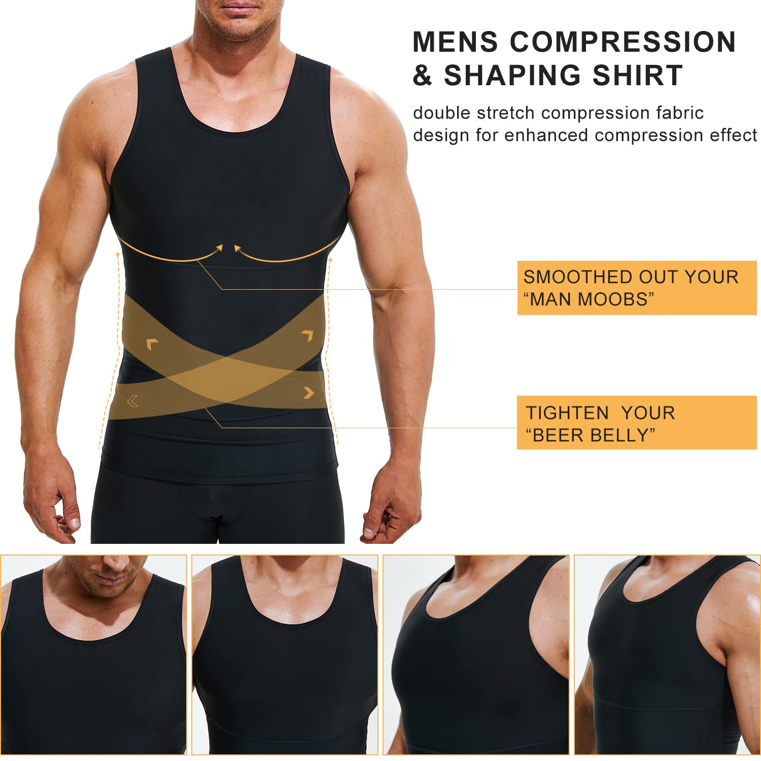 Men's Compression Shirt Slimming Body Shaper Vest Workout Tank Tops