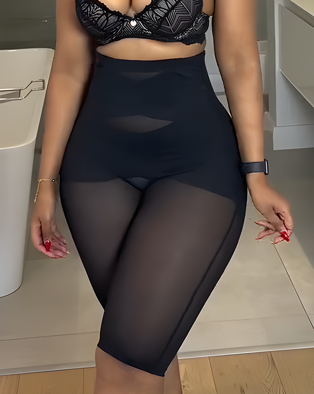 Sheer Mesh Tummy Control Mid- Length Shaper Pants