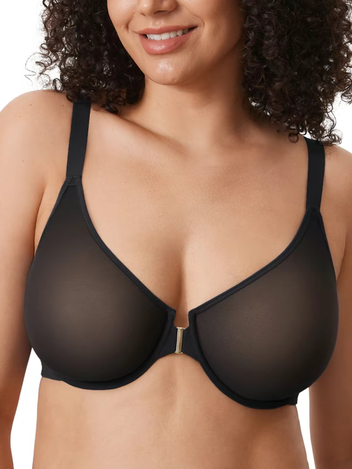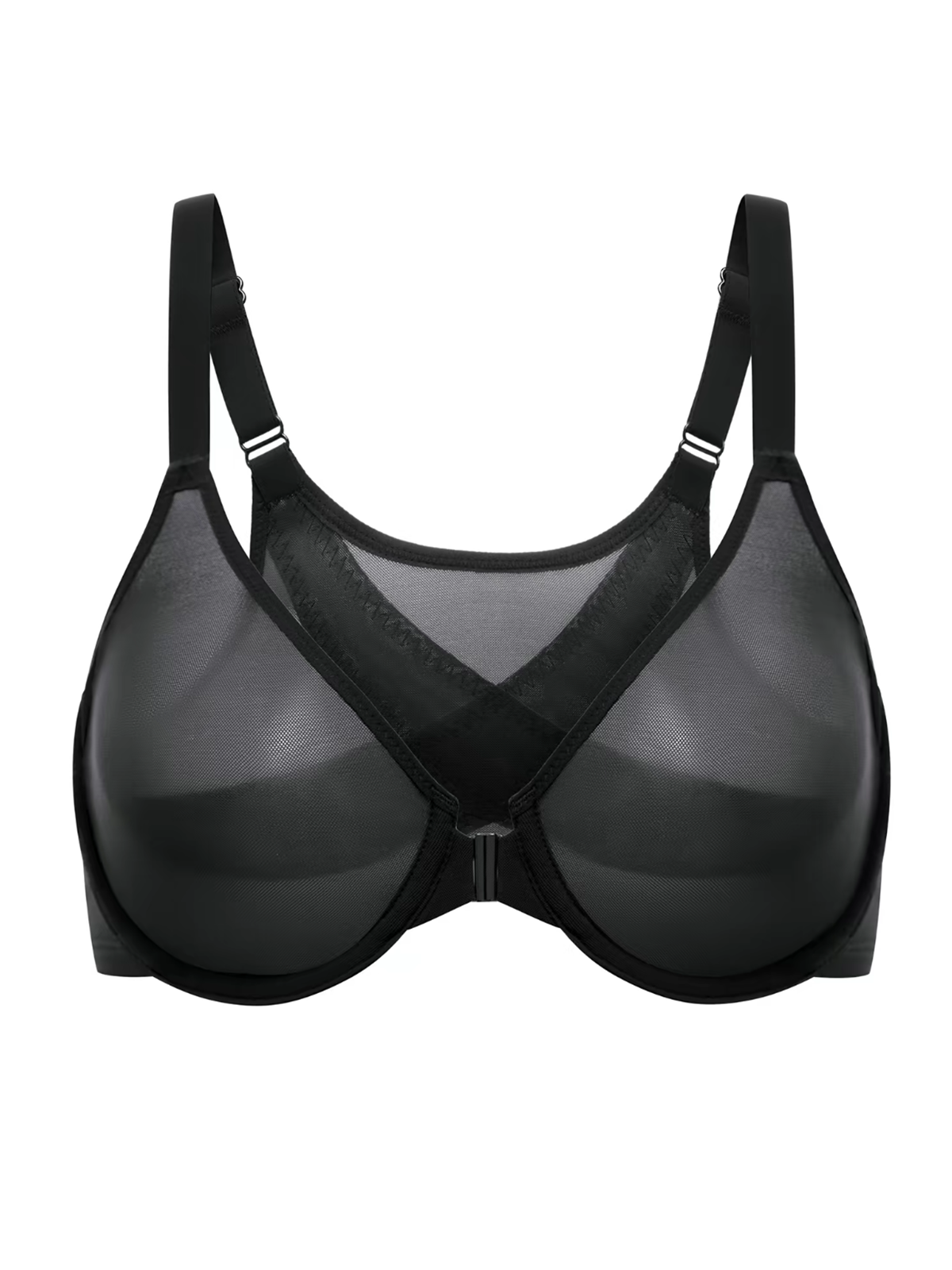 Transparent Mesh Front Clasp Underwire Unpadded Shaping Bra