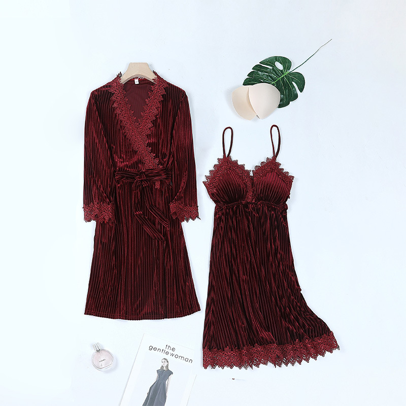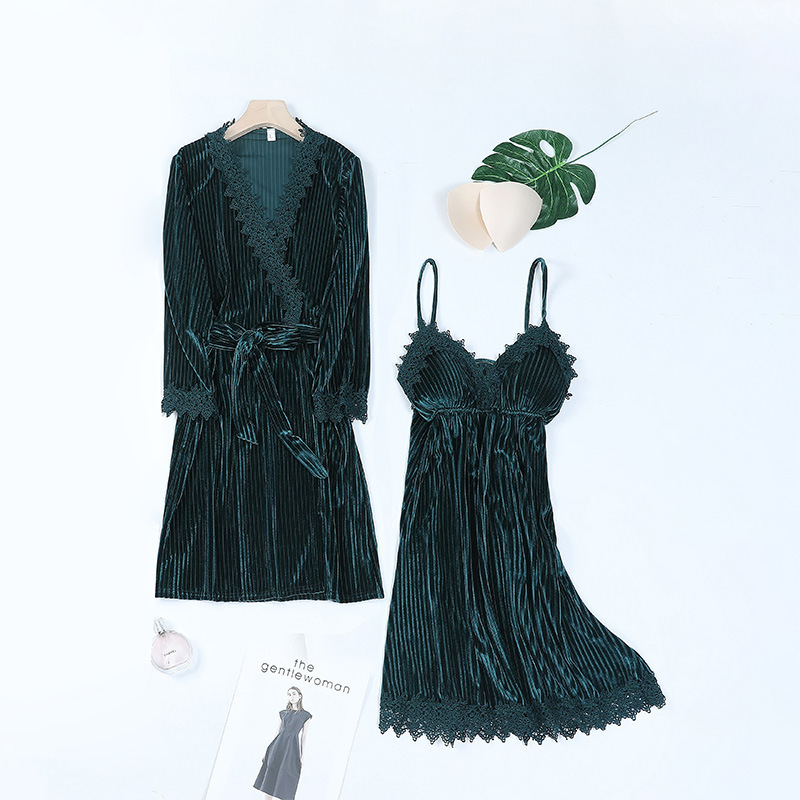 Velvet Lace Halter Nightgown 2 Piece Pajama Set